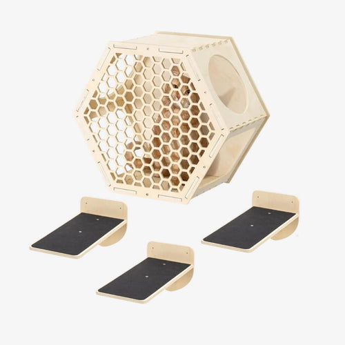Navaris Σετ με Επιτοίχιο Κρεβάτι και 2 Σκαλοπάτια για Γάτες - Beige - 61950.11