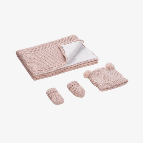 Navaris Σετ Βρεφική Κουβέρτα με Σκούφο και Γάντια - Beige - 54655.01
